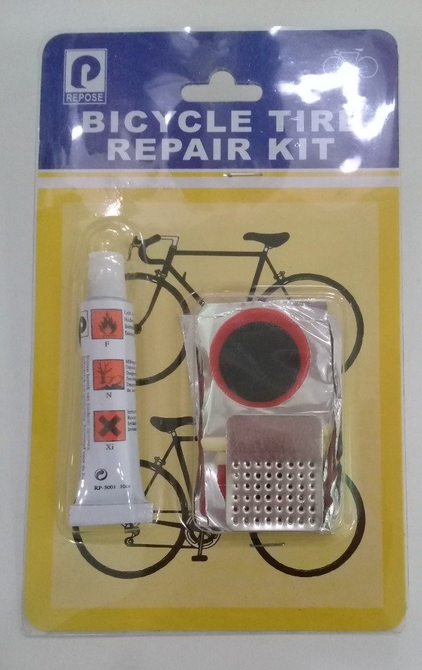 Trae solución, parches, una lija y gomines